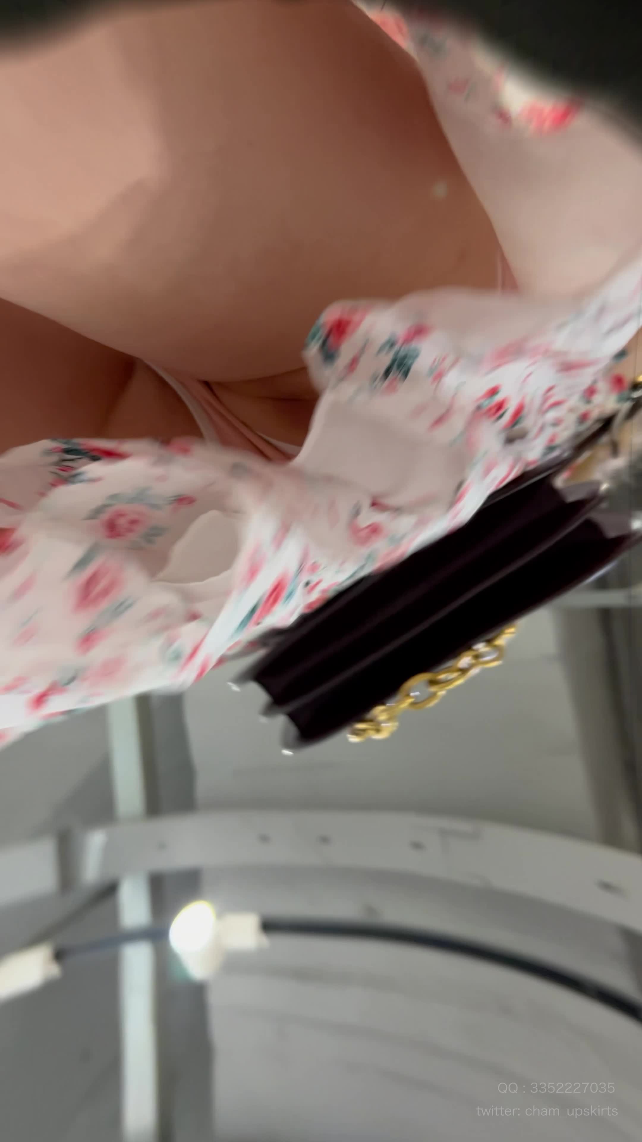 【kfc-001】★★碎花吊带裙学姐逛街..粉色窄内夹进小屁股里
